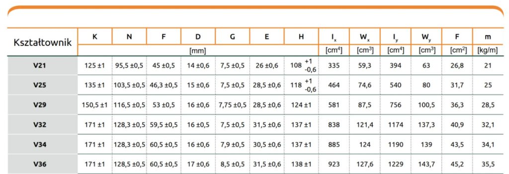 Kształtowniki górnicze typów V21, V25, V29, V32, V34 i V36 to produkty o wyjątkowej odporności na obciążenia dynamiczne i statyczne. Ich zastosowanie w konstrukcjach ochronnych zapewnia: